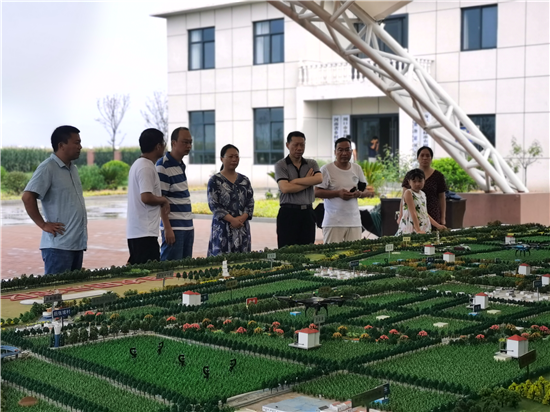 在商水縣高標準農(nóng)田示范區(qū)管理中心,劉勇一行認真聽取縣農(nóng)業(yè)局有關(guān)負責人關(guān)于商水縣高標準農(nóng)田建設(shè)暨高效節(jié)水灌溉示范工作開展情況介紹,現(xiàn)場觀看了商水縣高標準農(nóng)田建設(shè)工作專題片。劉勇認為商水深入推進國家“藏糧于地、藏糧于技”戰(zhàn)略,堅持以科技興農(nóng)助力鄉(xiāng)村振興,在高標準農(nóng)田和高效節(jié)水灌溉示范區(qū)建設(shè)工作中規(guī)劃起點高、建設(shè)標準高,提高了農(nóng)業(yè)綜合效益,樹立了標桿、打造了樣板,此種工作思路和做法值得學習借鑒。他表示,將組織全市的書畫家把商水縣高標準農(nóng)田的壯麗景觀描繪下來,讓我們家鄉(xiāng)的美景和農(nóng)業(yè)現(xiàn)代化巨大成就以更加直觀的形式展現(xiàn)在全省、全國的人民面前,從而進一步提高商水、周口的知名度和美譽度。