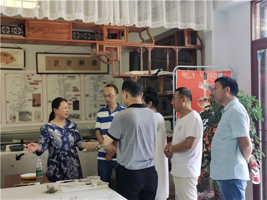 隨后,劉勇一行來到位于商水縣新城街道辦事處的商水縣書法家協(xié)會活動基地——黃莊居委會黨群服務(wù)中心“國寶進萬家活動基地”進行參觀,聽取了該基地負責人呂志華對美術(shù)創(chuàng)作和人才培訓(xùn)有關(guān)情況的匯報。他指出:一定要發(fā)揮河南省書法之鄉(xiāng)的優(yōu)勢,讓更多的人了解、認識中國優(yōu)秀傳統(tǒng)文化,進而學習傳統(tǒng)書畫,源源不斷地培育出更多的書畫人才和后起之秀。同時要積極創(chuàng)作好、準備好“周口美術(shù)進京展”的參展美術(shù)作品,不斷推出有周口特色、周口風格、周口氣派的精品力作,為繪就中原更加出彩周口特色添彩畫卷提供強大精神動力、營造良好的文化氛圍。