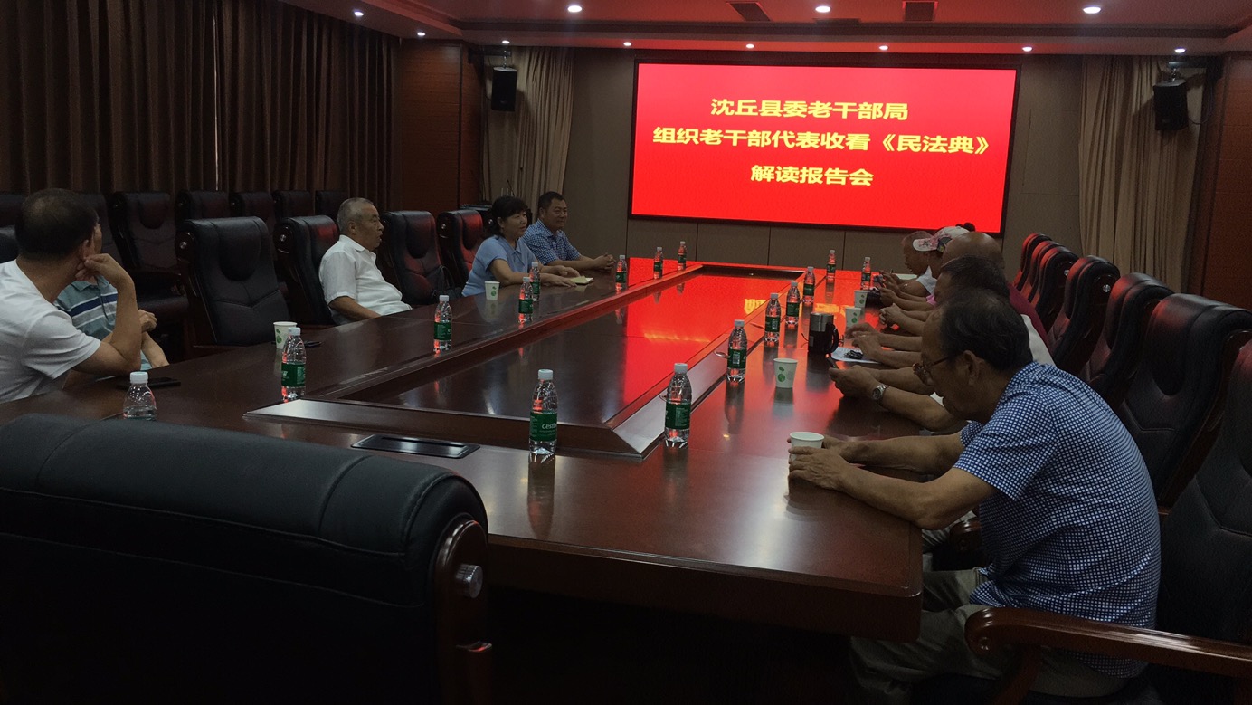 為更好貫徹全國(guó)“兩會(huì)”精神,引導(dǎo)離退休干部更好地學(xué)法用法,提高老同志運(yùn)用《民法典》維護(hù)自身權(quán)益的能力和水平,8月11日,沈丘縣委老干部局在三樓會(huì)議廳組織部分縣直老干部代表收聽收看河南省離退休干部《民法典》解讀報(bào)告會(huì)。
