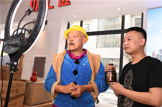 記者看到,川匯區(qū)直播電商產(chǎn)業(yè)基地直播大廳內(nèi),全市各個(gè)縣市區(qū)都在此設(shè)有土特產(chǎn)直播區(qū),川匯區(qū)賣的有伏羲貢酒等,淮陽(yáng)區(qū)賣的泥泥狗、布老虎、黃花菜、健身器具等,西華縣賣的有胡辣湯料等各種土特產(chǎn)。商家們“八仙過(guò)海,各顯神通”紛紛請(qǐng)來(lái)各路網(wǎng)紅大咖們助力直播。川匯區(qū)四五酒業(yè)請(qǐng)來(lái)“光頭強(qiáng)”熱賣四五老酒,西華縣的商家請(qǐng)來(lái)“趙本山”帶貨直播叫賣。