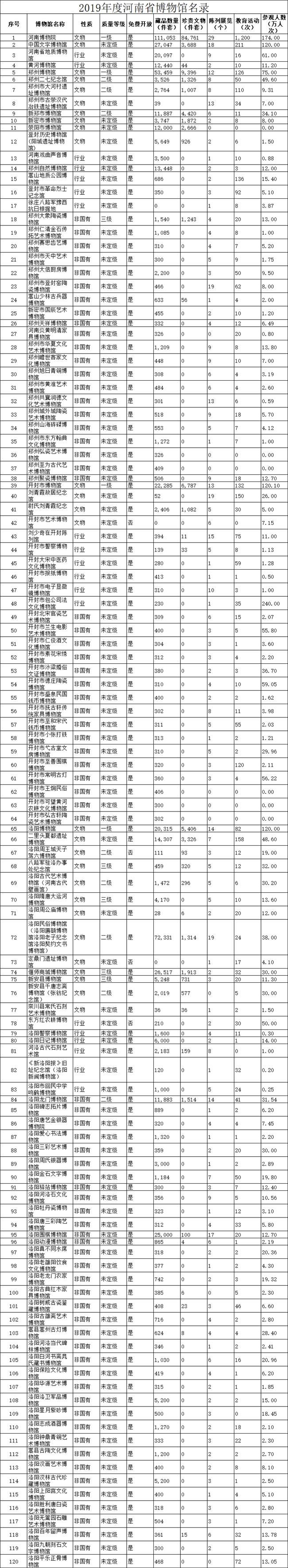 日前,《2019年度河南省博物館名錄》(以下簡稱《名錄》)對(duì)外公布。根據(jù)《名錄》,截至2019年底,河南省共有348家博物館,年接待觀眾達(dá)7174萬人次。周口市及下轄縣、區(qū)收入《名錄》博物館18家,年接待觀眾472.14萬人次。