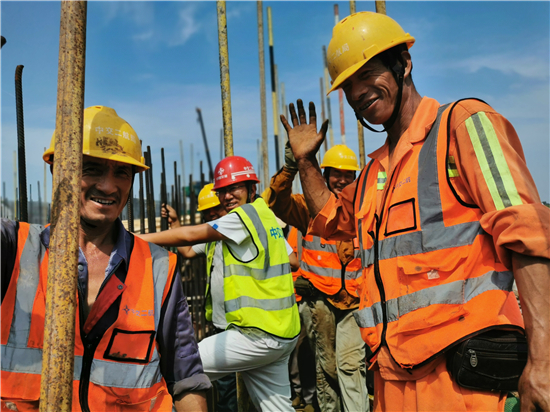 “黨徽胸前佩,工作有干勁!”王瑞煒說,為了抓好避開中午高溫時段,他和建設者們每天早上6點就到了工地,中午10點30分高溫時段回去休息,然后下午3點多再趕往工地。為了預防中暑,他們每天要喝三四斤水。