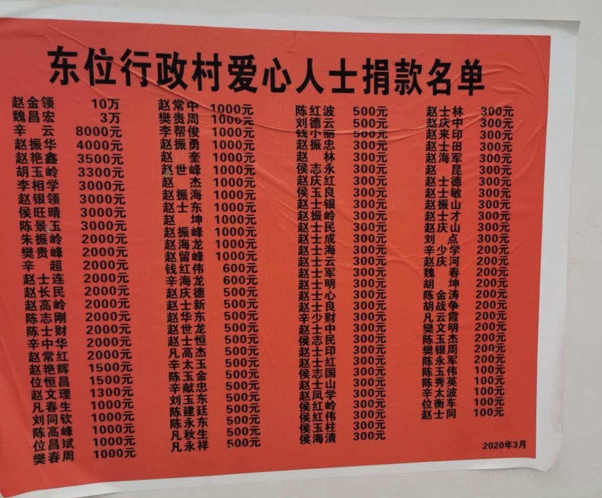 樊玉周向記者展示了兩份成績單:第一份是大家捐款明細(xì)。第二份便是鄉(xiāng)賢響應(yīng)黨委政府號召參與美麗東位建設(shè),為村莊帶來的新變化:實(shí)施坑塘改造1處面積300平方,道路硬化810米,硬化胡同5條700米并完善排水管道,綠化面積2600平方米,新建文化廣場3座,實(shí)施高標(biāo)準(zhǔn)農(nóng)田水利建設(shè),溝渠治理2800米,新挖機(jī)井45口,旱廁改造率80%以上,自來水、寬帶網(wǎng)絡(luò)實(shí)現(xiàn)全覆蓋,電網(wǎng)進(jìn)行了全面改造,9個自然村路燈全覆蓋,趙莊自然村監(jiān)控全覆蓋……