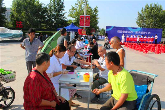 儀式現(xiàn)場,多家單位負(fù)責(zé)人宣讀了“提升健康素養(yǎng) 樂享銀齡生活”倡議書。儀式結(jié)束后,現(xiàn)場舉行大型義診、健康咨詢、文藝表演等活動。市、區(qū)醫(yī)療單位設(shè)立13個咨詢服務(wù)臺,圍繞“提升健康素養(yǎng) 樂享銀齡生活”活動主題,現(xiàn)場普及老年健康知識,通過擺放健康知識展版、發(fā)放健康宣傳折頁、提供健康咨詢和現(xiàn)場義診服務(wù)等形式,為老年人提供量血壓、測血糖、測視力、等健康服務(wù)。針對常態(tài)化疫情防控中對老年人的生活照顧、健康管理、醫(yī)養(yǎng)結(jié)合、慢性病預(yù)防等內(nèi)容,結(jié)合老年人特點(diǎn),圍繞營養(yǎng)膳食、運(yùn)動健康、心理健康、合理用藥等方面展開科普宣傳指導(dǎo),普及老年健康科學(xué)知識和老年健康相關(guān)政策。叮囑老人做好居家衛(wèi)生,出門戴口罩,做好個人防護(hù),并針對老年人常見的高血壓、糖尿病、冠心病等,給予健康評估和健康指導(dǎo),讓廣大老年人切身感受到社會的關(guān)懷和溫暖,提高了老年人的健康素養(yǎng),收到了良好的社會效果。