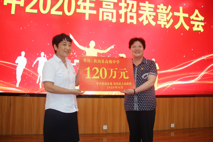 8月31日上午,在扶溝高中2020年度高招表彰會(huì)現(xiàn)場,張穎波親手頒發(fā)了120萬元的獎(jiǎng)勵(lì)金,其中60萬獎(jiǎng)給被清華、北大錄取的新生,60萬獎(jiǎng)給扶溝高中。