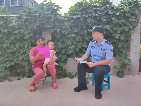 圖為9月5日,在該鄉(xiāng)劉樓村村民吳秀蓉家,縣公安局民警葉釗成正在進(jìn)行政策宣傳和問(wèn)卷調(diào)查。(記者 韋偉 通訊員 劉銘威 攝)