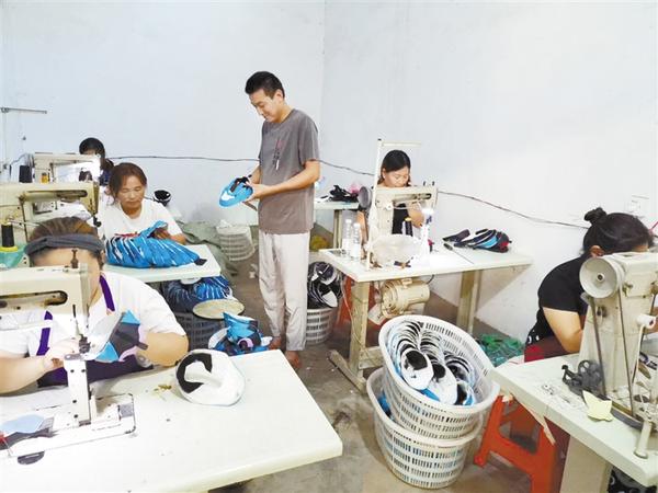 太康縣有為青年孫錦博致富不忘鄉(xiāng)鄰,2017年,他返鄉(xiāng)在轉(zhuǎn)樓鎮(zhèn)創(chuàng)辦了太康縣飛躍鞋業(yè)有限公司,產(chǎn)品出口到南非等國(guó)家,讓群眾實(shí)現(xiàn)了掙錢、顧家兩不誤。圖為車間一角。