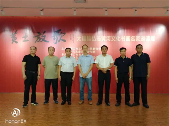 9月9日上午,秋高氣爽。為慶祝中華人民共和國成立71周年,進(jìn)一步講好“黃河故事”,延續(xù)歷史文脈,堅(jiān)定文化自信,展示書畫國粹藝術(shù),激發(fā)社會正能量,為繪就周口特色添彩畫卷凝聚精神力量,由周口市文學(xué)藝術(shù)界聯(lián)合會、中共太康縣委宣傳部主辦,周口市美術(shù)館、太康縣文學(xué)藝術(shù)界聯(lián)合會、太康縣書法家協(xié)會、太康縣美術(shù)家協(xié)會承辦的“黃土放歌”太康縣弘揚(yáng)黃河文化書畫名家邀請展在周口市美術(shù)館隆重舉行。