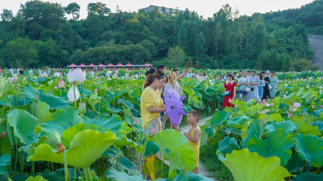 金秋九月,豐收在望。新縣泗店鄉(xiāng)陸灣村籽蓮產(chǎn)業(yè)基地荷紅柳綠、蓮蓬滿池,村黨支部書記方賢文正領(lǐng)著村民在荷花池內(nèi)忙著采摘成熟的蓮蓬,歡聲笑語滿溢荷塘。