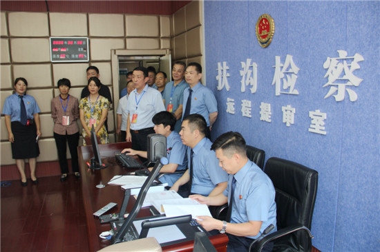 調(diào)研組一行參觀了扶溝縣檢察院優(yōu)化營商環(huán)境、服務(wù)企業(yè)發(fā)展以及公益訴訟、掃黑除惡、脫貧攻堅(jiān)、未成年刑事檢察、黨建等工作展板,實(shí)地察看了檢察院遠(yuǎn)程提審等“三遠(yuǎn)一網(wǎng)”平臺使用情況、案管大廳、未成年人檢察工作影像資料、心理咨詢室和榮譽(yù)室。