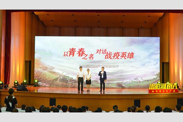 “天使白”“橄欖綠”“守護(hù)藍(lán)”“志愿紅”……以自己的親身經(jīng)歷、鏗鏘誓言、閃耀丹心繪就了感人肺腑、可歌可泣的時代畫卷?!叭珖箵粜鹿诜窝滓咔橄冗M(jìn)個人”,被河南省委書記、河南省人大常委會主任王國生點贊,直接用手為80歲老人清理肛腸糞石的“最美逆行人”、焦作市人民醫(yī)院重癥醫(yī)學(xué)科醫(yī)生趙童;“請總書記放心,我們一定會在平凡崗位上續(xù)寫不平凡的故事”“用自己的辛勤勞動為疫情防控和經(jīng)濟(jì)社會發(fā)展貢獻(xiàn)更多力量”,一直堅守保潔、物業(yè)等崗位,主動請戰(zhàn)馳援武漢等地醫(yī)院,以實際行動為抗擊疫情作出特別貢獻(xiàn)的鄭州圓方集團(tuán)職工;“我是退伍老兵,更是共產(chǎn)黨員”“牽掛和責(zé)任支撐我奮斗”“從一個人到一群人,從10噸菜到130噸菜,從大年三十到春暖花開,三次冒著生命危險去武漢送蔬菜的河南周口市沈丘縣田營村黨支部書記王國輝:“前線后方齊心戰(zhàn)‘疫’,青春伉儷雙雙出彩”“伉儷攜手‘不做被保護(hù)的人’”“愛情之花在抗疫中綻放”的河南大學(xué)援鄂醫(yī)生黃志昂、抗體藥物開發(fā)技術(shù)國家地方聯(lián)合工程實驗室主任李霞夫婦……通過他們有溫度、有情感、有深度地講述“親身經(jīng)歷的戰(zhàn)疫”,讓大家讀懂了“世上沒有從天而降的英雄,只有挺身而出的凡人”,正是他們以不怕苦、不畏難、不懼犧牲的英雄氣概,用臂膀扛起如山的責(zé)任,展示出青春激昂的風(fēng)采,展現(xiàn)出中華民族的希望。