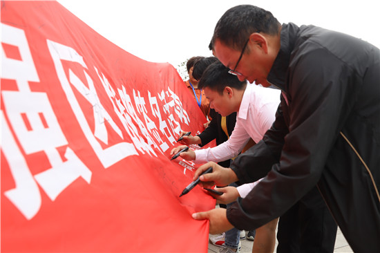 儀式上,周口市文明誠(chéng)信企業(yè)、周口市港潤(rùn)精密工業(yè)有限公司負(fù)責(zé)人翟振以“守初心、擔(dān)使命,推動(dòng)高質(zhì)量發(fā)展”為題,向全區(qū)廣大企業(yè)、商戶發(fā)出開展質(zhì)量月活動(dòng)、實(shí)施質(zhì)量強(qiáng)區(qū)倡議。