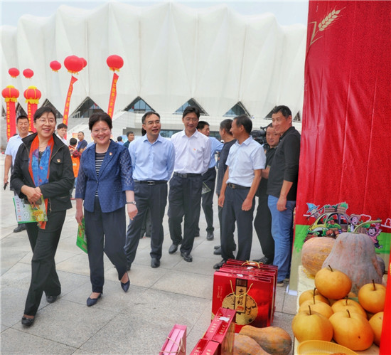 在固城鄉(xiāng)農(nóng)副產(chǎn)品展臺(tái),談起豐收節(jié),李報(bào)中滿臉喜悅。今年他承包的200多畝蘆筍種植基地大豐收,在致富的同時(shí),還吸納十幾名貧困戶在基地務(wù)工,帶動(dòng)他們脫貧致富?!斑@是我們農(nóng)民自己的節(jié)日,借著豐收節(jié)不僅能推介農(nóng)副產(chǎn)品,大家還能跟著熱鬧放松,是一舉多得的好事情。”李報(bào)中高興地說。