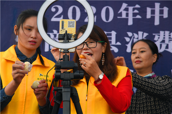 臺上好戲連臺,臺下直播熱鬧非凡。在商水縣商務局、縣電商辦的組織下,8家供應商通過網(wǎng)紅直播帶貨為家鄉(xiāng)產(chǎn)品代言,把本地的豬蹄、咸鴨蛋、牛肉、變蛋、黑色五谷等特色農(nóng)產(chǎn)品銷往全國各地,打開農(nóng)產(chǎn)品銷售新渠道,為農(nóng)民脫貧致富奔小康增添新動能。據(jù)統(tǒng)計,當天上午豐收節(jié)開幕式期間,各商家兩個小時里通過網(wǎng)紅直播帶貨共下單686個,交易額42800元。
