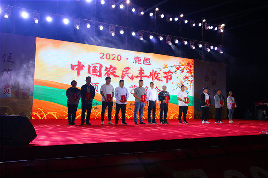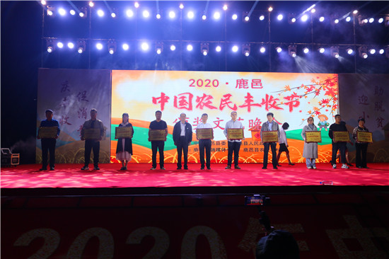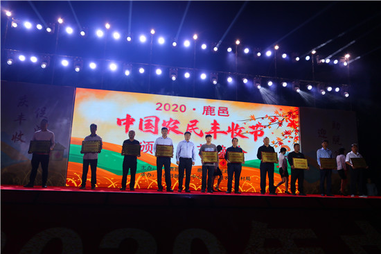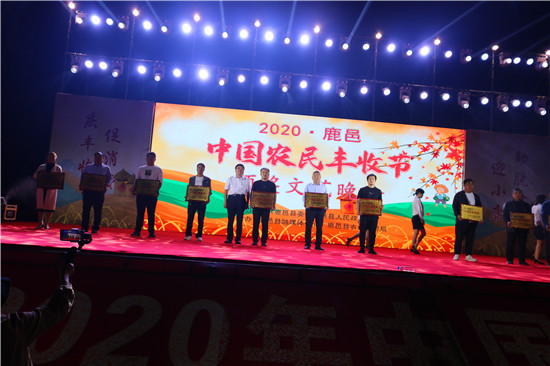 9月22日晚,由中共鹿邑縣委、鹿邑縣人民政府主辦的2020年鹿邑縣農(nóng)民豐收節(jié)文藝晚會(huì)在鹿邑縣文化中心廣場(chǎng)舉辦。晚會(huì)現(xiàn)場(chǎng)頒布了鹿邑縣“十佳家庭農(nóng)場(chǎng)”“十佳農(nóng)民合作社”“十佳特色農(nóng)產(chǎn)品品牌”“十佳返鄉(xiāng)創(chuàng)業(yè)脫貧致富帶頭人”“十佳脫貧致富先進(jìn)個(gè)人”五項(xiàng)獎(jiǎng)項(xiàng),40名新型農(nóng)民(農(nóng)場(chǎng)、合作社)代表和10個(gè)特色農(nóng)產(chǎn)品品牌獲殊榮,他們用行動(dòng)和產(chǎn)品充分展示了全縣現(xiàn)代農(nóng)業(yè)在過(guò)去一年中取得的輝煌成果??h領(lǐng)導(dǎo)雷申、楊所超、侯自峰、王曉征、張國(guó)慶、肖西國(guó)等出席豐收節(jié)晚會(huì),并為獲獎(jiǎng)?wù)哳C發(fā)榮譽(yù)證書和獎(jiǎng)牌。