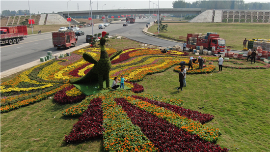 周口港區(qū)布置鮮花造景,靜候嘉賓到來