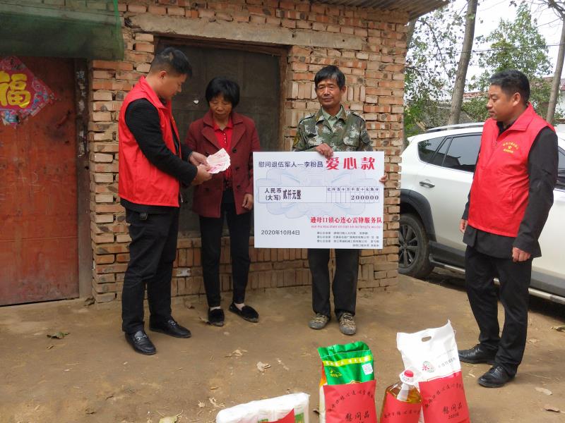 “感謝黨!感謝政府,感謝志愿者們在節(jié)假日跑這么遠來看望我們……”太康縣遜母口鎮(zhèn)五所樓行政村李老莊村退役老兵李粉昌握著鎮(zhèn)人大代表、心連心雷鋒服務隊隊長張新靜的手,激動地訴說著心聲。10月4日,遜母口鎮(zhèn)人大代表、心連心雷鋒服務隊隊長張新靜帶領(lǐng)志愿者李雨來、安闖將、周雷、劉會強、程婷婷等人來到李粉昌家中,給他家送去2000元愛心款和米、面、油等生活用品。