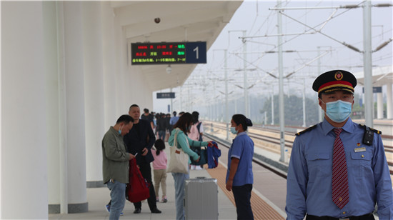 抓好客流乘降組織。該站提前對國慶節(jié)期間的客流進行預測分析,掌握每日列車預售情況,并根據可能出現的大客流,合理制定旅客乘降組織方案,靈活調配崗位,對預售人數較多的車次,在檢票口、扶梯口、站臺、出站口處增配人員,充分做好旅客的宣傳引導和乘降組織工作,使客運組織工作安全有序。