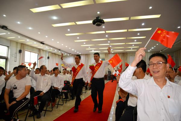 16名“出彩新義人”和8名提名獎(jiǎng)獲得者,身披綬帶,胸帶紅花,在全體職工的注視下,揮手走過紅毯通道。伴著激昂的音樂,在“出彩新義人”簽名墻上簽上自己的名字,臺(tái)下的員工家屬熱情的揮動(dòng)著手中的國(guó)旗,為他們吶喊、鼓掌……