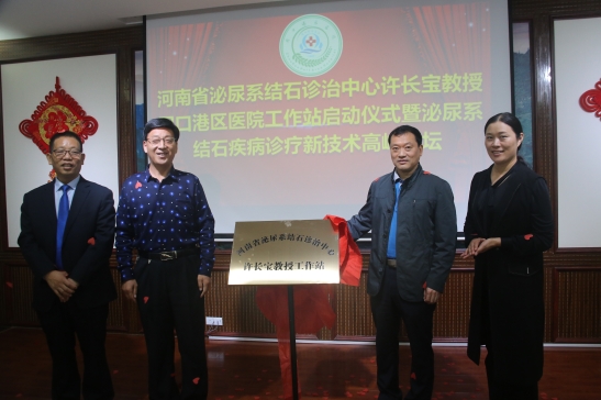 張東立、許長寶、孫繼祥、張巋共同為許長寶教授周口港區(qū)醫(yī)院工作站進行揭牌。