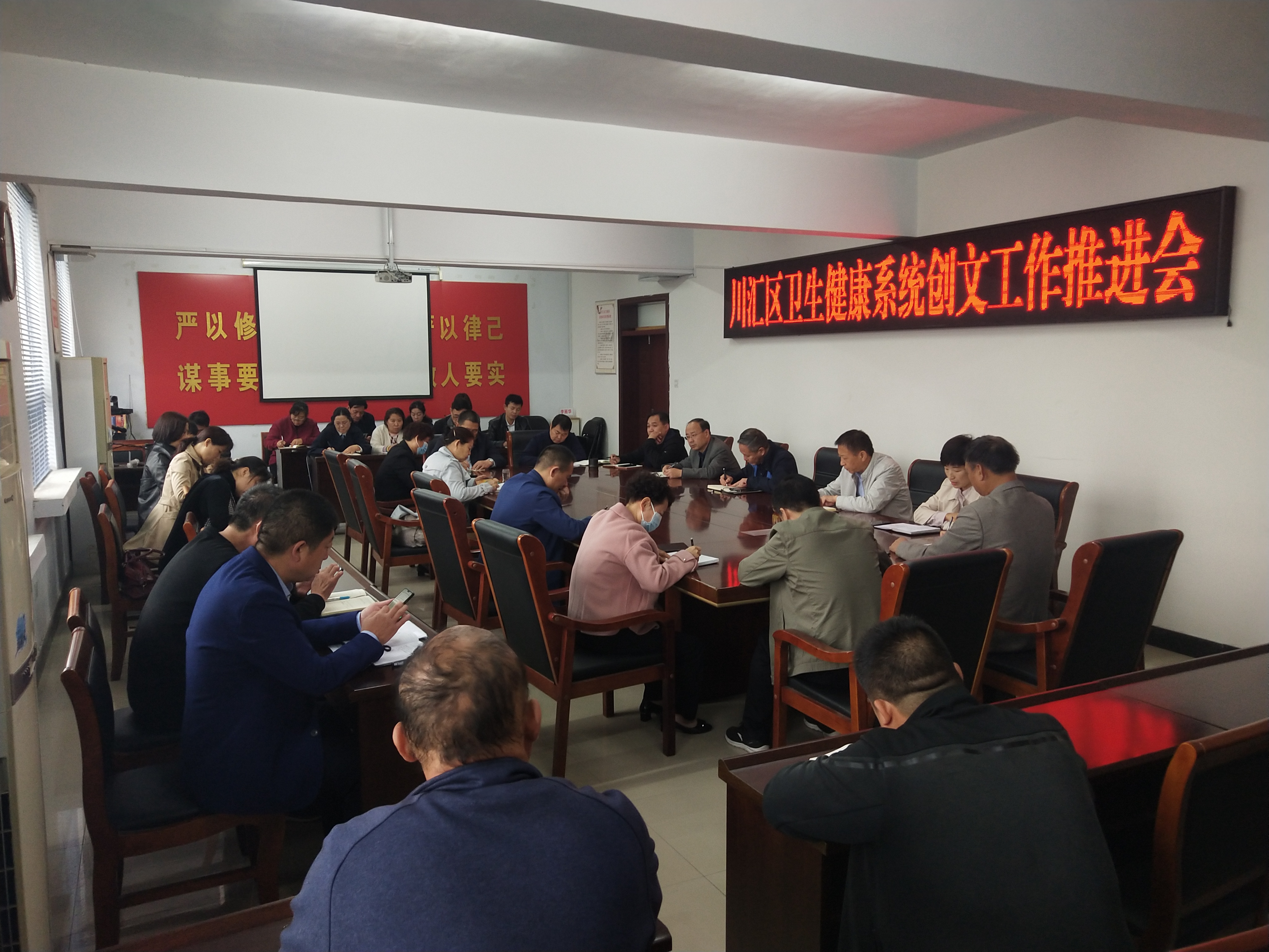 10月12日上午,川匯區(qū)衛(wèi)健委在委四樓會議室召開“創(chuàng)文”工作推進會。副區(qū)長晉瑞英出席會議并講話。委班子成員、各醫(yī)院院長、社區(qū)衛(wèi)生服務(wù)中心主任、委機關(guān)各股室及委二級機構(gòu)負(fù)責(zé)人參加會議。