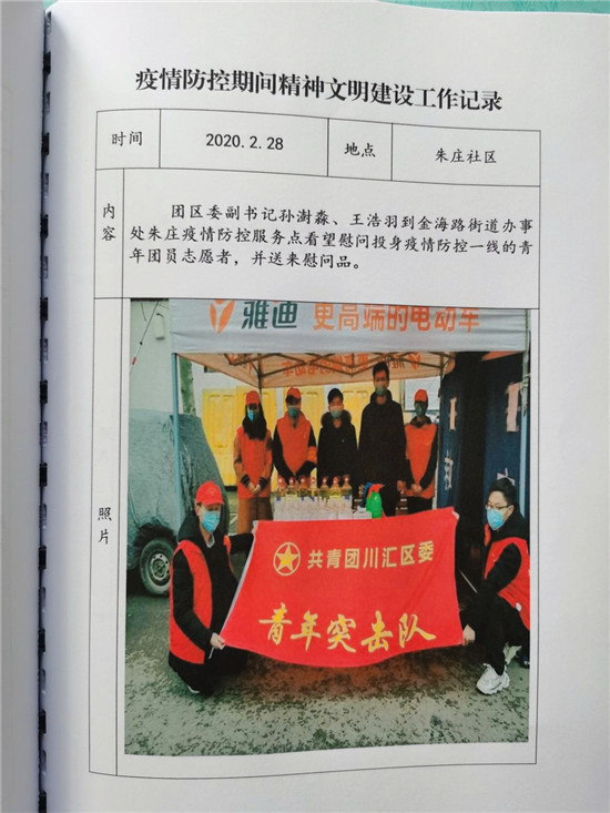 規(guī)范統(tǒng)一。朱莊社區(qū)創(chuàng)文檔案資料主要包括疫情防控、綜合文化服務(wù)、志愿者服務(wù)、黨員教育、普法教育等內(nèi)容,共12本。在格式方面,對(duì)字體、字號(hào)、圖片排版、數(shù)字和標(biāo)點(diǎn)符號(hào)使用等進(jìn)行規(guī)范,做到風(fēng)格統(tǒng)一。在活動(dòng)記錄方面,分為活動(dòng)方案制定、活動(dòng)圖片、活動(dòng)小結(jié)等內(nèi)容,按照統(tǒng)一格式匯總整理,手寫(xiě)記錄與彩色照片搭配,使活動(dòng)記錄清楚、生動(dòng)、明了。在資料裝訂方面,采用統(tǒng)一封面活頁(yè)裝訂。