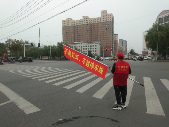 10月12日,記者在周口中心城區(qū)交通大道與建安路交叉口看到,幾名志愿者手中的小紅旗“加長了”,上面還寫有“不闖紅燈,不越停車線”的溫馨提示語。路過此處,不少市民把目光投在了這個(gè)加長的小紅旗上,有的還輕聲讀出紅旗上的標(biāo)語。通過這些溫馨提示語,讓市民在潛移默化中逐漸增強(qiáng)文明出行的意識(shí)。記者 張洪濤 攝 ②5