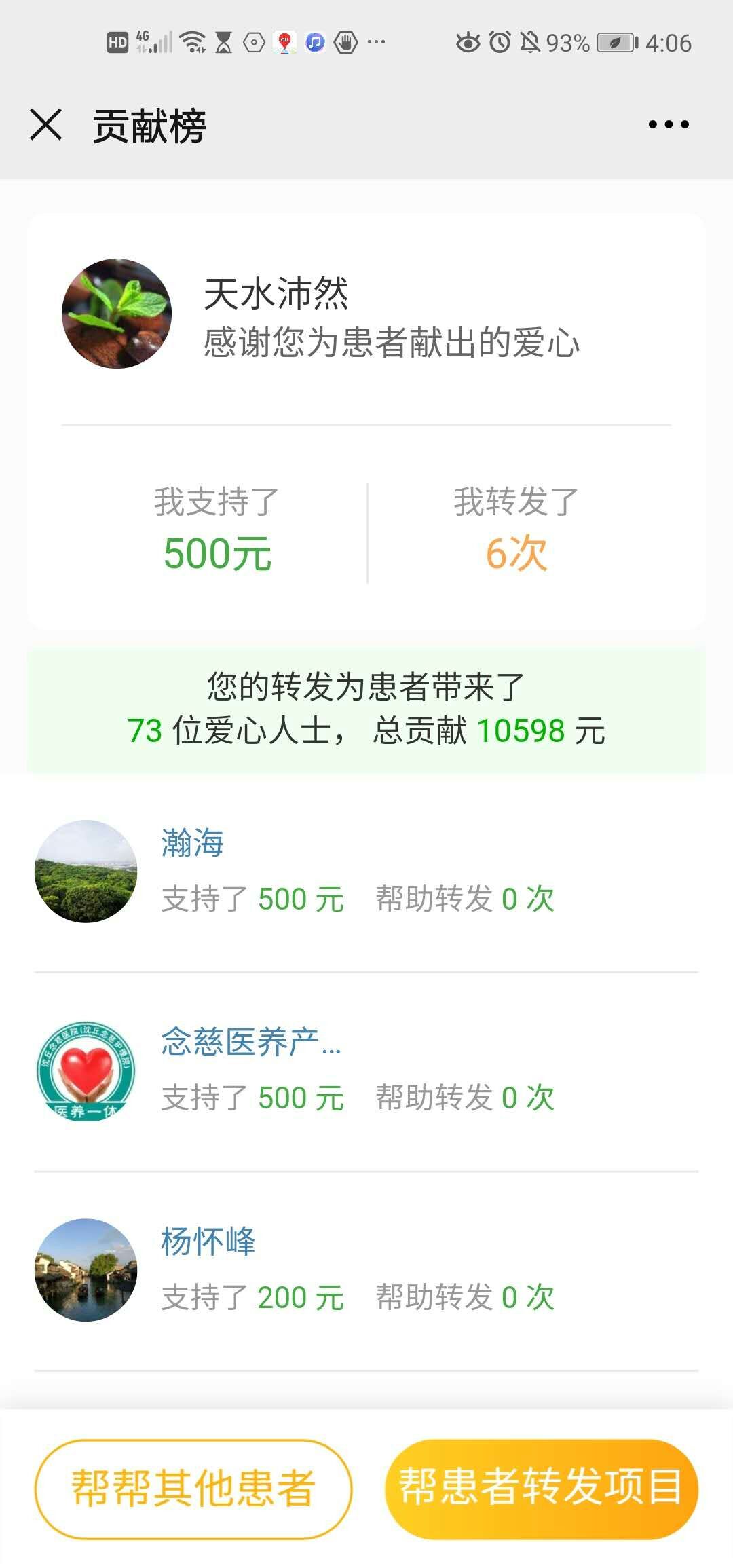 為盡快籌措治療費用,一家人商量后于9月22日在網絡平臺發(fā)起“輕松籌“,截至10月13日已籌得十萬余元,幫助次數(shù)2547次,省市周口籍人大代表、政協(xié)委員、企業(yè)家、原西華師范畢業(yè)的師生、小罐茶老總杜國楹等愛心人士紛紛捐款。他在西華二高就讀時,教他英語的謝老師當即借出兩萬塊錢給孩子治病。劉亞隆從小學到高中的同學和老師都發(fā)來問候,有錢出錢,有力出力?!昂⒆訌男【拖矚g幫助同學,老師們都知道,這次生病牽動著他們的心,說句心里話他們對亞隆的幫助令我很感動。”亞隆爸爸說。