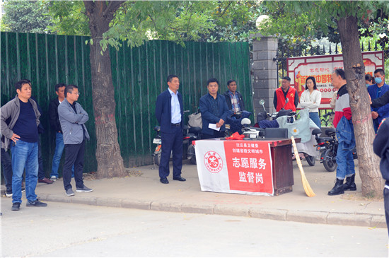 10月12日下午,沈丘縣衛(wèi)健委機(jī)關(guān)全體人員在分包路段召開(kāi)省級(jí)文明城市創(chuàng)建沖刺會(huì)。副處級(jí)干部、縣衛(wèi)健委主任張治君就“創(chuàng)文”工作和分包路段的環(huán)境衛(wèi)生綜合整治提出要求,全委上下必須進(jìn)一步堅(jiān)定信心,加大工作力度,聚焦短板弱項(xiàng),對(duì)標(biāo)對(duì)表,攻堅(jiān)克難,全力沖刺,全面提升,確保省級(jí)文明城市創(chuàng)建決圓滿成功。圖為沈丘縣衛(wèi)健委機(jī)關(guān)人員在分包路段打掃衛(wèi)生。②18