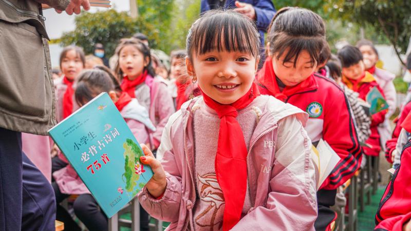 在看到擺在面前的幾百本書(shū)籍時(shí),孩子們的眼睛更亮了。散發(fā)著油墨清香的一本本新書(shū)遞到了孩子們手中,有經(jīng)典名著、古文詩(shī)詞,還有寓言故事、科普傳記等等。興奮地翻閱著手中的書(shū)籍,孩子們不由自主地念出聲來(lái):“繁星閃爍著,深藍(lán)的太空,何曾聽(tīng)得見(jiàn)他們對(duì)語(yǔ),沉默中,微光里,他們深深的互相頌贊了……”優(yōu)美的詩(shī)句撫慰著孩子們的心靈,滋養(yǎng)著他們的精神世界。