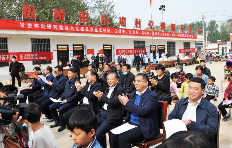 在后席村文化廣場,路海江一行同后席村村民一起觀看了群眾自編自演節(jié)目,為5名受表彰的后席村“脫貧攻堅先進個人”代表佩戴綬帶、頒發(fā)證書,并與到后席村參加義診、送科技、送種子、送化肥、送政策的太康縣衛(wèi)健委、縣農(nóng)村農(nóng)業(yè)局、縣扶貧辦、縣司法局、縣退伍軍人事務管理局、縣文聯(lián)、縣科協(xié)等單位幫扶人員親切交談,對大家助力省委黨史研究室定點扶貧工作所付出的努力表示感謝。
