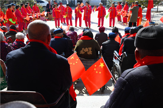 10月25日上午,商水縣練集鎮(zhèn)敬老院的院民自編自演文藝節(jié)目歡度重陽節(jié)。
