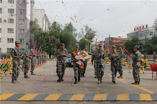 2018年,他積極備戰(zhàn),炎炎夏日把每個(gè)動(dòng)作反復(fù)練、練反復(fù),手裂出了傷口,綁起紗布接著練,臉上被曬的又紅又腫只為了當(dāng)初的誓言,最終他以壓倒性?xún)?yōu)勢(shì)取得全師第一名的好成績(jī)。