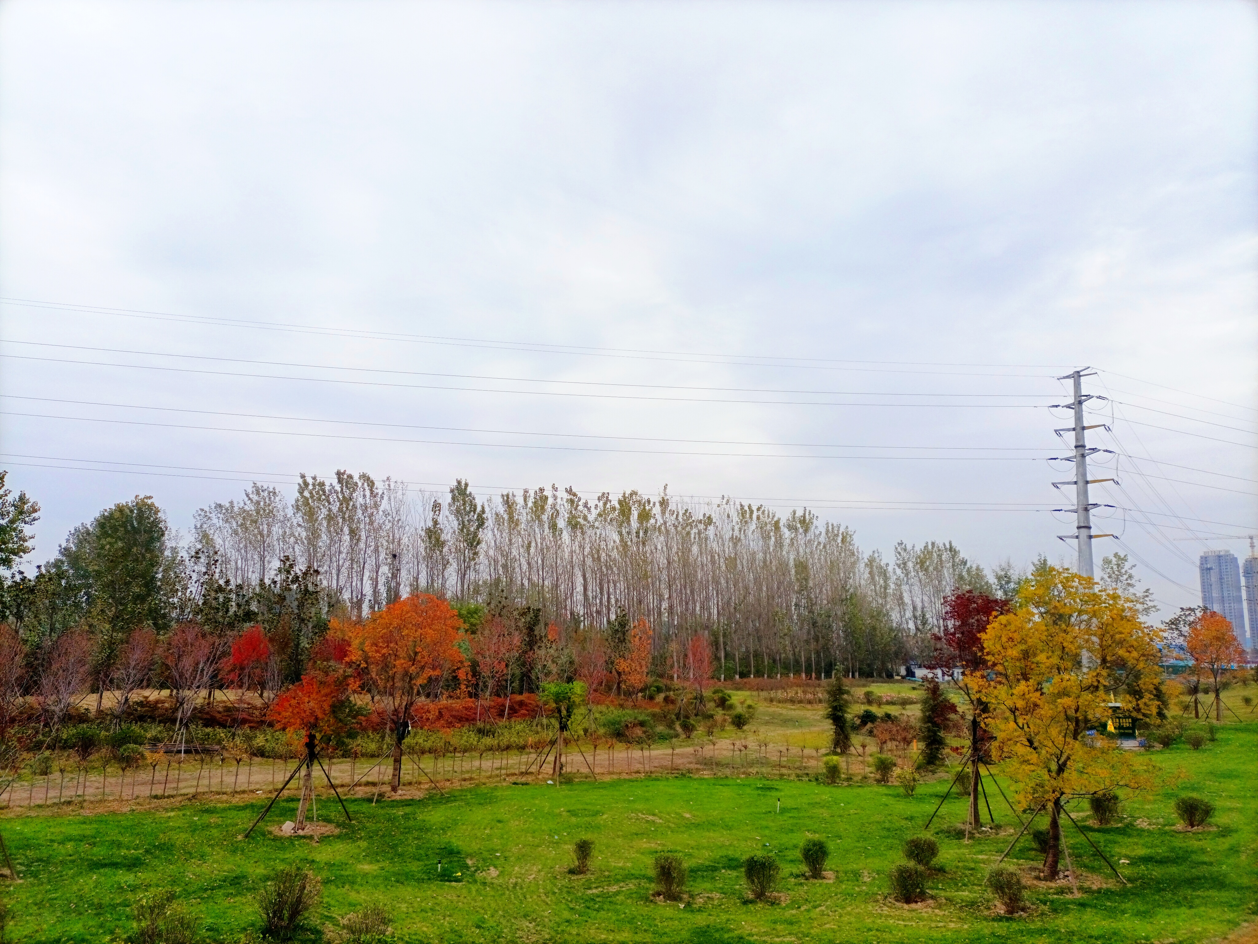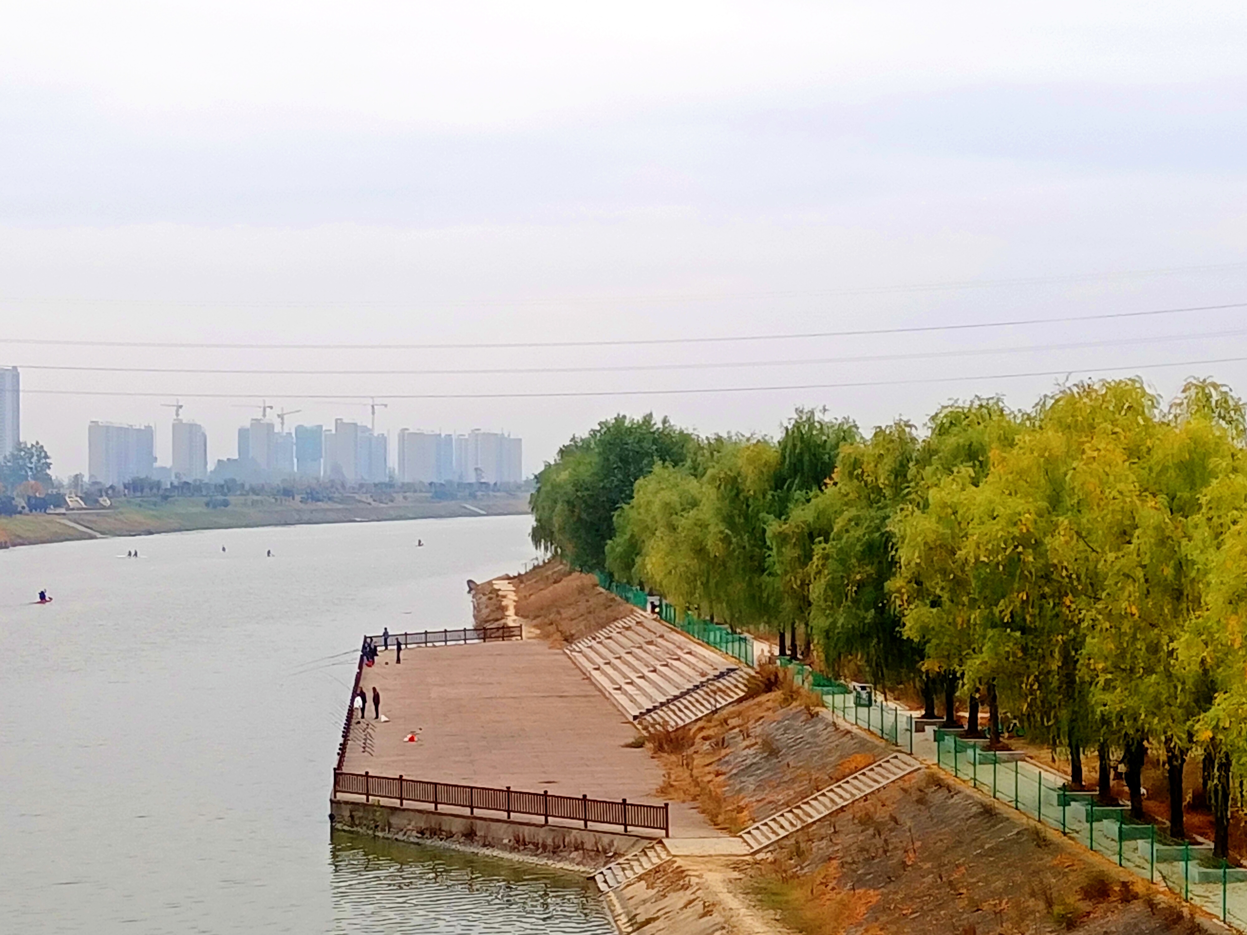 深秋時(shí)節(jié)天漸涼,滿(mǎn)目綠色稍染黃。沙潁河畔秋光美,游人垂釣劃舟忙。