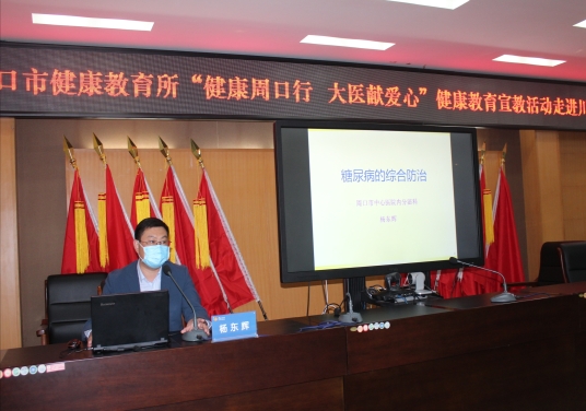 當(dāng)日下午,周口市中心醫(yī)院內(nèi)分泌科主任楊東輝帶領(lǐng)健康知識巡講志愿服務(wù)團隊為干部職工開展了“糖尿病的綜合防治”科普知識講座。