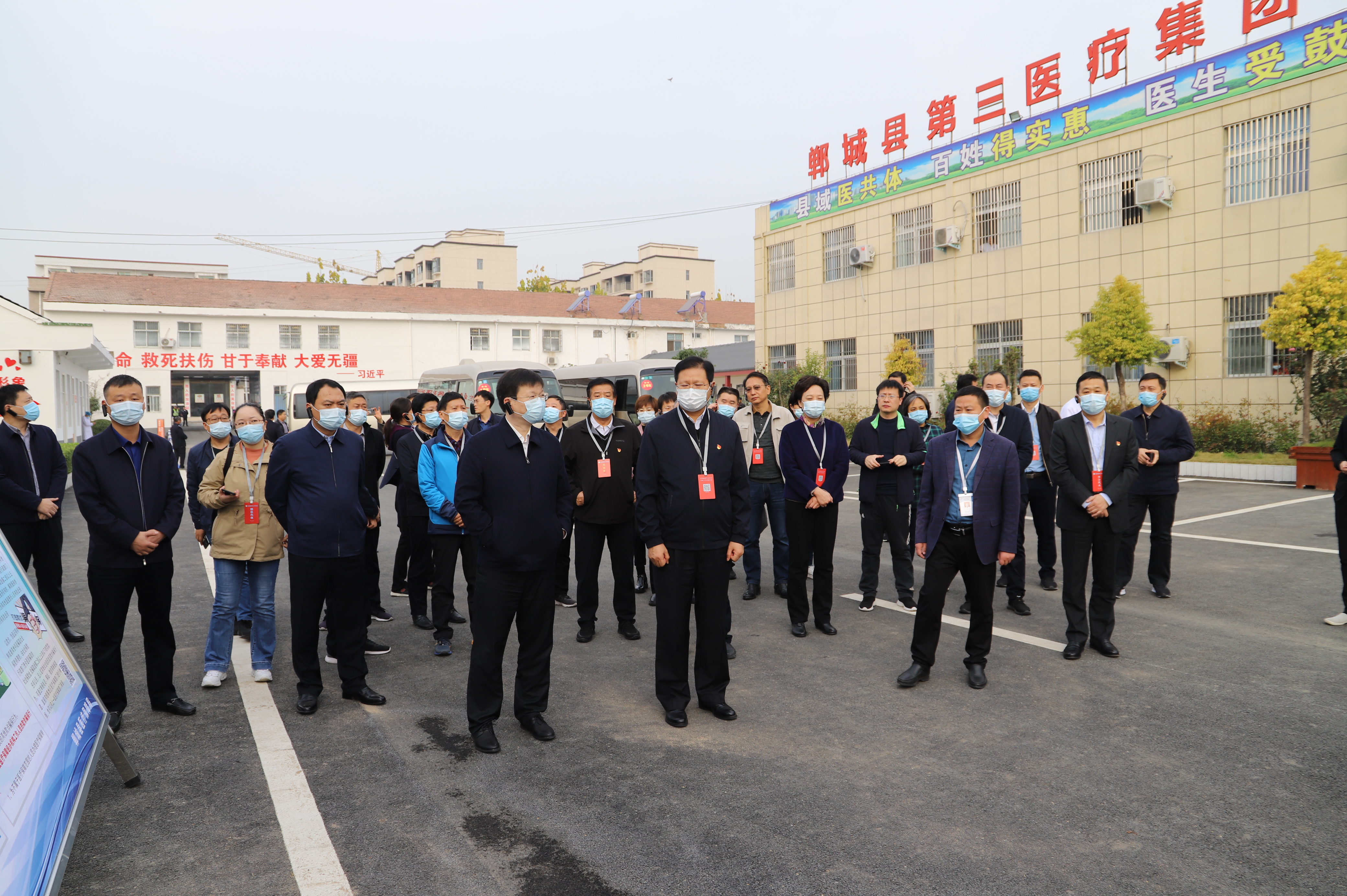 會(huì)議當(dāng)天,河南省衛(wèi)健委黨組成員、副主任王良啟,省紀(jì)委駐省衛(wèi)健委紀(jì)檢組長(zhǎng)、委黨組成員李剛,省扶貧辦黨組成員、副主任郭奎立,省醫(yī)保局黨組成員、副局長(zhǎng)王峻峰,帶領(lǐng)來自全省衛(wèi)健、扶貧、醫(yī)保及部分醫(yī)療機(jī)構(gòu)的參會(huì)人員,分組觀摩鄲城縣人民醫(yī)院、中醫(yī)院、第二人民醫(yī)院、婦幼保健院牽頭的四大醫(yī)健集團(tuán)縣、鄉(xiāng)、村三級(jí)醫(yī)共體建設(shè)及助力健康扶貧成效,大家一致點(diǎn)贊“鄲城經(jīng)驗(yàn)”。周口市人大常委會(huì)副主任、鄲城縣委書記羅文閣,副市長(zhǎng)馬劍平,鄲城縣長(zhǎng)李全林、縣人大常委會(huì)主任李建軍等參加現(xiàn)場(chǎng)會(huì)。