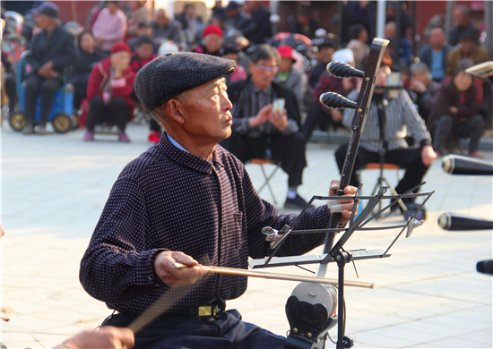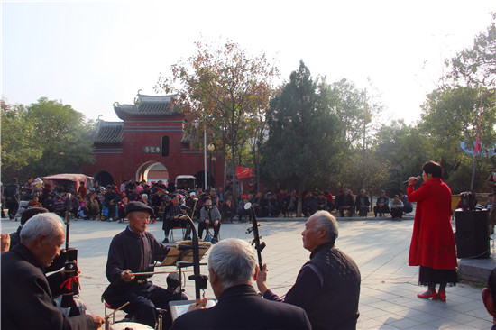 11月10日,戲迷朋友在商水縣郝崗鎮(zhèn)北社村千年古塔旁表演戲曲節(jié)目。初冬時節(jié),暖陽普照,壽圣寺古塔附近的戲迷和樂器愛好者自發(fā)來到千年古塔旁表演戲曲節(jié)目,為當?shù)厝罕娝蜕暇实奈幕蟛停M一步活躍了農(nóng)村文化生活。①15周口日報·周道客戶端記者付永奇 通訊員 呂耀光 攝