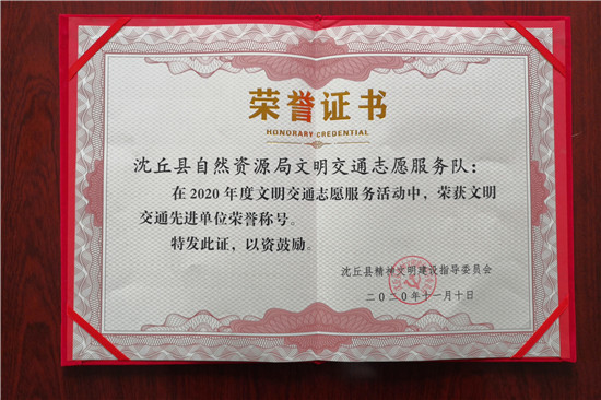 為大力弘揚“奉獻(xiàn)、友愛、互動、進(jìn)步”的志愿服務(wù)精神,樹立典型、激勵先進(jìn),近日,沈丘縣精神文明建設(shè)指導(dǎo)委員會對2020年度文明交通志愿服務(wù)活動情況進(jìn)行通報表彰,全縣25家部門單位文明交通志愿服務(wù)隊、101名文明交通優(yōu)秀志愿者受表彰,沈丘縣自然資源局名列其中。