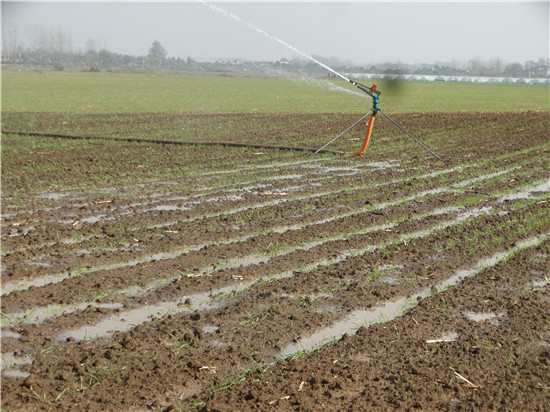 11月12日,暖陽(yáng)高照。沈丘縣周營(yíng)鎮(zhèn)孔營(yíng)村偌大的麥田地塊,當(dāng)?shù)胤N田大戶忙著用噴灌機(jī)械對(duì)小麥進(jìn)行噴灌澆水補(bǔ)墑。針對(duì)目前部分墑情較差或群體偏小、長(zhǎng)勢(shì)較弱的麥田,該縣農(nóng)業(yè)農(nóng)村局引導(dǎo)農(nóng)民發(fā)揮現(xiàn)有農(nóng)機(jī)、水資源優(yōu)勢(shì),抓緊噴灌澆水,以沉實(shí)土壤,培育冬前壯苗。同時(shí)農(nóng)業(yè)專家建議澆水后要注意及時(shí)劃鋤,以增溫保墑,破除板結(jié)。③6