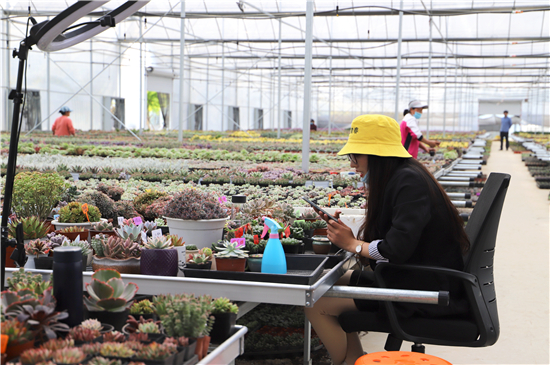 “雙11”剛過,河南“多肉之王”、省電商扶貧帶頭人張國健正帶領著團隊在鄲城縣農高區(qū)多肉基地為2300多單精準發(fā)貨。今年38歲的張國健開過挖掘機、當過銷售員,2014年在南方涉足電商時摔了大跟頭,賠了70多萬元。回到老家白馬鎮(zhèn)辦了多肉種植基地之后,鄲城縣商務局等部門與其對接培訓了網(wǎng)紅、推薦了人才、在農高區(qū)設立2650平方米的大棚,張國健邁上了快車道,年銷售額在3000萬元以上。今年又增加9個大棚,包括錢店鎮(zhèn)、石槽鎮(zhèn)兩個供貨代養(yǎng)的扶貧大棚,幫扶30多戶貧困戶脫貧,帶動電商從業(yè)人員160余人。