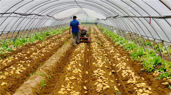試點(diǎn)村宋崗、王村率先嘗試鋼架拱棚種植,春季在棚內(nèi)種植土豆,夏季養(yǎng)殖豆蟲,秋季種植糯玉米、水果玉米、小尖椒、有機(jī)花菜等,“三季連作”,立體化種植。當(dāng)年,這兩個村的群眾收成喜人,收入翻番。
