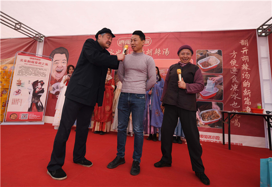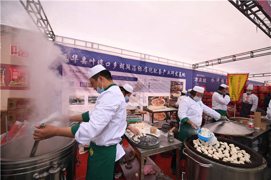 16日上午,在西華縣舉辦的“中國·西華胡辣湯大賽”現(xiàn)場,一邊是48家頂級(jí)胡辣湯店同臺(tái)對(duì)決,滾滾香湯,讓人難耐垂涎。而在賽場外的展銷區(qū),來自西華縣的胡辣湯店免費(fèi)做湯、包子、油條,讓逛大賽的人們隨便吃,過足癮!記者在現(xiàn)場看到,派送美食的店鋪前,排成長長的隊(duì)伍,胡辣湯店七八個(gè)師傅,現(xiàn)場忙碌著做美食,人們吃著喝著,大呼過癮,身在胡辣湯之鄉(xiāng),讓人沉醉在美食的盛宴中。記者看到,有的商家還請(qǐng)來“趙本山”“宋丹丹”為大賽現(xiàn)場助陣。①15