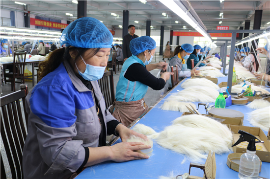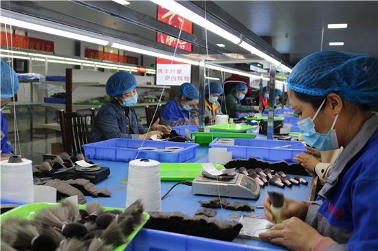 “從簡單的梳羊毛到如今做高檔化妝刷,從產(chǎn)業(yè)鏈的末端做到頂端,從養(yǎng)家糊口到賺外匯,經(jīng)過多年的滾動發(fā)展,鹿邑縣硬是把尾毛化妝刷這種‘小手藝’做成了助推縣域經(jīng)濟(jì)高質(zhì)量發(fā)展的‘大產(chǎn)業(yè)’。目前,全縣大大小小的化妝刷企業(yè)達(dá)1000多家,尾毛出口總量占全國化妝刷原毛出口的80%,年產(chǎn)羊毛3000多噸、尼龍毛9000多噸,生產(chǎn)各類化妝刷1.5億套,產(chǎn)品遠(yuǎn)銷20多個國家和地區(qū)。另外,作為尾毛的衍生產(chǎn)業(yè),羊毛衫加工產(chǎn)業(yè)近幾年的異軍突起,更是激活了全縣創(chuàng)業(yè)就業(yè)的一池春水。統(tǒng)計數(shù)字顯示,近幾年,鹿邑縣持續(xù)圍繞尾毛化妝刷特色產(chǎn)業(yè),強(qiáng)鏈延鏈補(bǔ)鏈,開展精準(zhǔn)招商,化妝刷及配套企業(yè)已發(fā)展到135家,實現(xiàn)產(chǎn)值50多億元,出口創(chuàng)匯21億;羊毛衫紡織企業(yè)發(fā)展到54家,有電腦織機(jī)6500臺,年產(chǎn)各類針織服裝6000萬件,使鹿邑成為河南省最大的化妝刷生產(chǎn)基地、羊毛衫加工基地,帶動全縣7.5萬人創(chuàng)業(yè)就業(yè)。