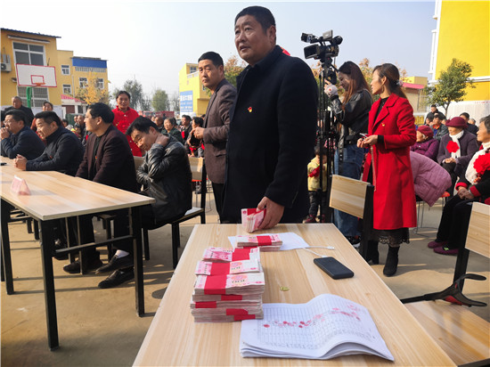 11月20日,雖然初冬的微風略帶寒意,但絲毫沒有影響西華縣紅花集鎮(zhèn)護擋城村群眾的熱情。上午8時不到,老少爺們爭先恐后地趕到村文化廣場,個個臉上洋溢著幸福的笑容,期待著他們村第一次集體資產(chǎn)分紅大會的召開。