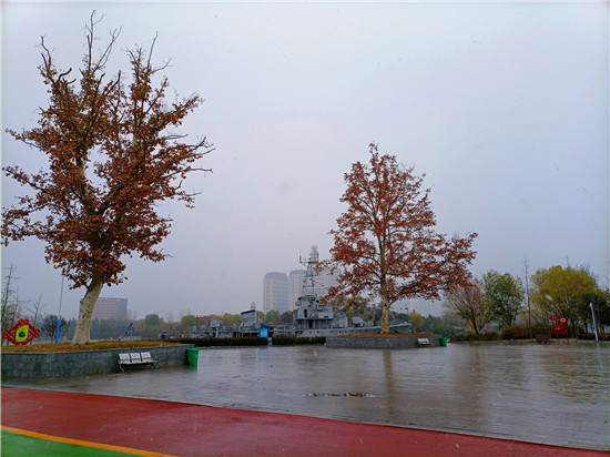 昨天剛過完小雪節(jié)氣,今天就下了一場雪。這場雪像是如期而至的約定,又似突如其來的驚喜,妝扮了整個(gè)城市。飛揚(yáng)的雪花落到地上,草葉上,枝頭上,瞬間融化成晶瑩的水珠,滋潤著大地和萬物,形成了秋與冬交接的獨(dú)特景色。