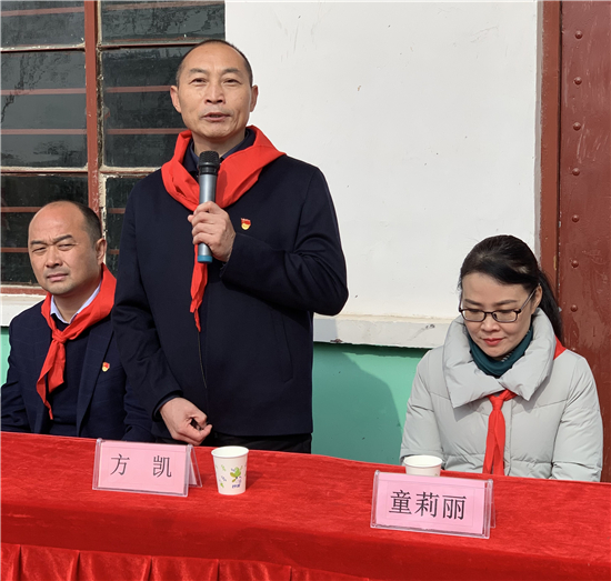 在《聽(tīng)我說(shuō)謝謝你》的童聲合唱的歌聲中,鐵爐小學(xué)的216名小學(xué)生用歌聲表達(dá)對(duì)方凱奉獻(xiàn)愛(ài)心的贊美:“聽(tīng)我說(shuō)謝謝你,因?yàn)橛心悖瑴嘏怂募?。謝謝你,感謝有你,世界更美麗。謝謝你,感謝有你,把幸福傳遞。因?yàn)橛心?,?ài)常在心底......”在歌聲中,小學(xué)生代表為方凱和參加儀式的領(lǐng)導(dǎo)戴上鮮艷的紅領(lǐng)巾。