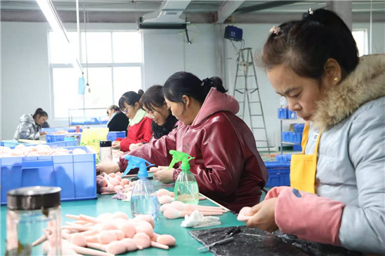 2014年,孫小懶家被列入建檔立卡貧困戶。孫小懶一人帶著三個孩子,不能出遠門務工,只能守著二畝薄田種些莊稼度日。今年初冬,家門口的河南雅彩美妝用具有限公司開工,孫小懶是第一批主動報名的員工。經(jīng)過崗前培訓,她正式上崗,主要負責化妝刷的套管工作,一個月能掙3000多元。“計件工資,干得多就掙得多。等技術(shù)更加熟練后,工資還會上漲,以后的日子會越來越紅火。”孫小懶樂呵呵地說。
