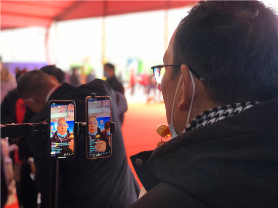28日早上7時(shí)許,周口網(wǎng)紅俱樂(lè)部的網(wǎng)紅們和工作人員就開始為今天的直播做準(zhǔn)備,早早把直播設(shè)備搬到現(xiàn)場(chǎng),進(jìn)行調(diào)試。10時(shí)左右,周商產(chǎn)品展示展覽活動(dòng)現(xiàn)場(chǎng)人頭攢動(dòng),熱鬧非凡,來(lái)自周口本地的9位網(wǎng)紅們陸續(xù)架好手機(jī)直播設(shè)備,打開補(bǔ)光燈,開始直播?,F(xiàn)場(chǎng)的9位網(wǎng)紅各有特色,有打扮時(shí)髦的美女主播,有歌聲出眾的中年大叔,年齡最大的網(wǎng)紅是今年65歲的鹿邑大爺。網(wǎng)紅們一手拿著周口的蜂蜜、空心掛面、麻花、粉條、醬豆等土特產(chǎn),一邊對(duì)著手機(jī)屏幕里的粉絲熱情地展示和介紹起來(lái),有的還直接進(jìn)行現(xiàn)場(chǎng)吃播,不時(shí)與網(wǎng)友進(jìn)行唱歌、聊天互動(dòng),吸引了不少行人前來(lái)觀看。“原來(lái)在抖音上看過(guò)網(wǎng)紅帶貨,但沒(méi)見過(guò)真人, 今天終于見到真實(shí)的網(wǎng)紅了!感覺(jué)很有意思!”前來(lái)觀展的市民劉女士說(shuō)。