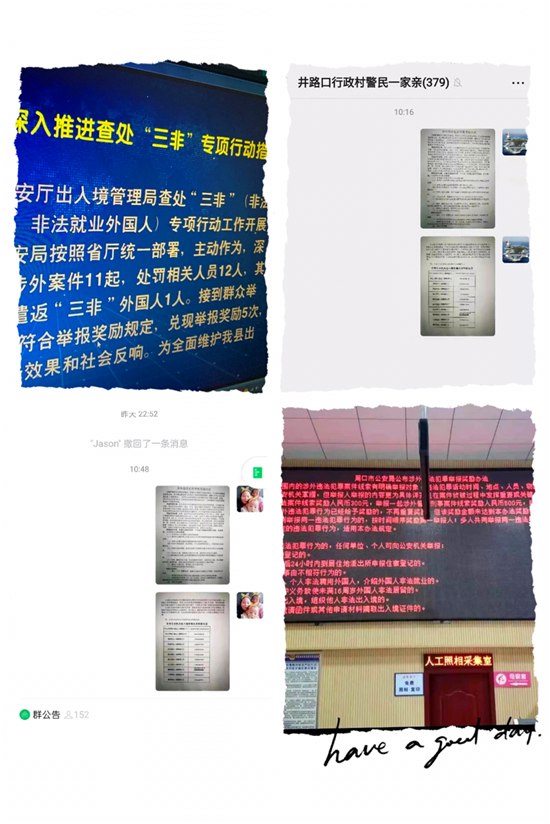 組織集中宣傳。為全面提升宣傳效果,鄲城縣公安局出入境管理科民警面對面向400余名群眾講解市公安局涉外違法犯罪舉報獎勵辦法、國家移民管理局12項移民出入境便利政策措施和疫情防控常態(tài)化非常態(tài)管理等。同時,利用社區(qū)警民微信群、平安建設(shè)微信群、警務(wù)微信群、一村一警工作微信群等不間斷宣傳,并要求每日轉(zhuǎn)發(fā)內(nèi)容截圖上報,進(jìn)一步提高了人民群眾的知曉率和參與度。