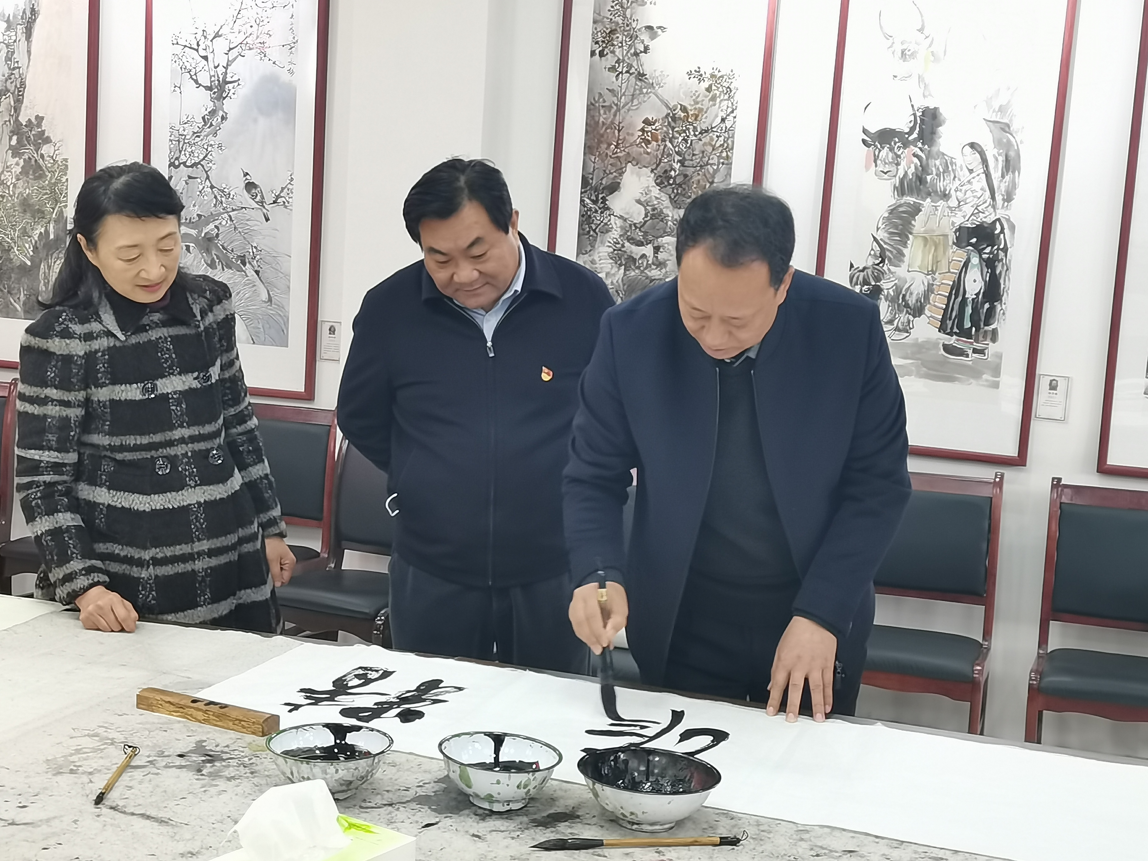 王國璽一行實(shí)地察看了縣文聯(lián)的機(jī)關(guān)環(huán)境建設(shè)、檔案管理和書畫名家精品,聽取了縣文聯(lián)主席安義斌關(guān)于協(xié)會管理、活動開展情況的匯報(bào)后,對文聯(lián)的工作給予充分肯定。他勉勵全縣文藝工作者:一是要堅(jiān)持正確的政治方向,弘揚(yáng)主旋律,講好太康故事;二是要“走出去、請進(jìn)來”,經(jīng)常開展與外地進(jìn)行交流,汲取經(jīng)驗(yàn),相互切磋,共同提升;三是要活動開展常態(tài)化,真正做到“文藝為民、文藝惠民、文藝樂民”;四是要以提高藝術(shù)素養(yǎng)、提升專業(yè)能力為目標(biāo),培養(yǎng)德藝雙馨的藝術(shù)領(lǐng)軍人物和高素質(zhì)藝術(shù)人才,推動全縣藝術(shù)事業(yè)高質(zhì)量發(fā)展;五是要成立“文化產(chǎn)業(yè)發(fā)展集團(tuán)”,匯聚全縣藝術(shù)精英,為全縣藝術(shù)家搭建更高的平臺,讓太康文化藝術(shù)走出太康,走得更遠(yuǎn)。